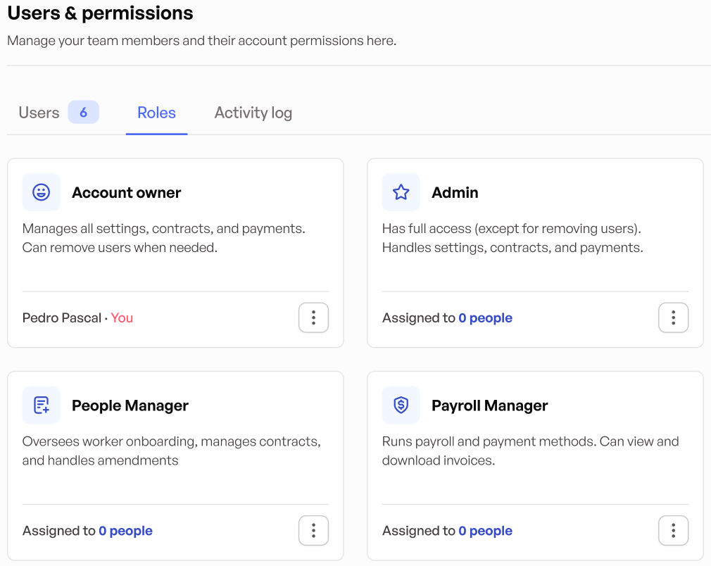 With the new Roles tab and two specialized roles (People Manager and Payroll Manager), teams now work with more clarity, security, and control.