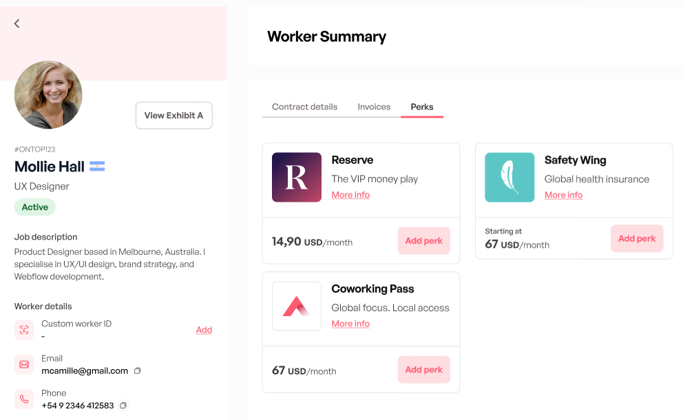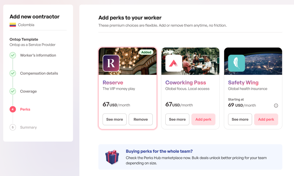 Now, you can add optional perks directly during the hiring flow, before or after contract signature.